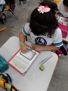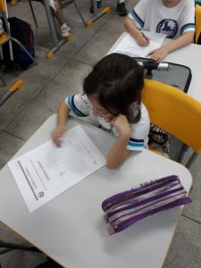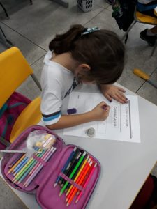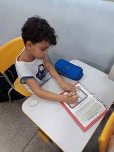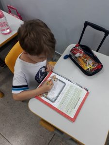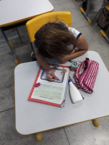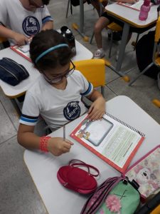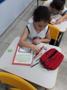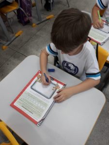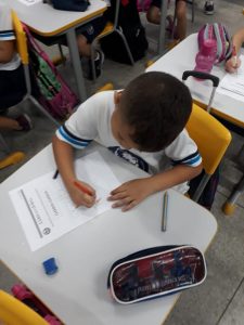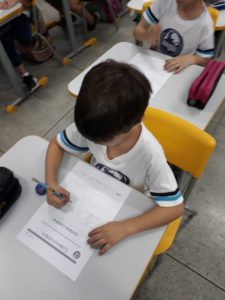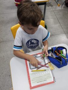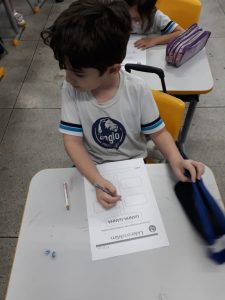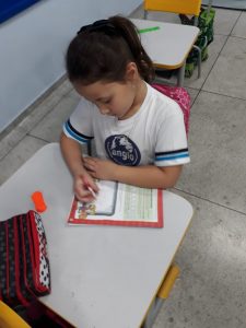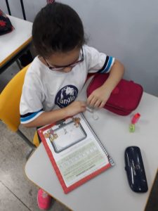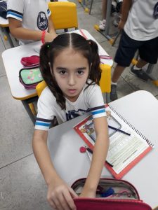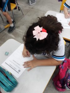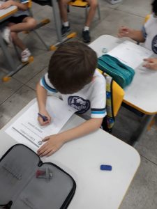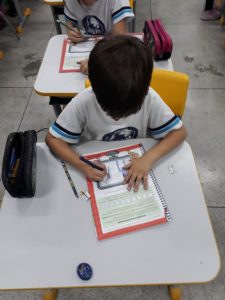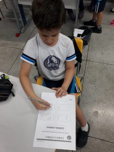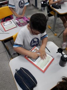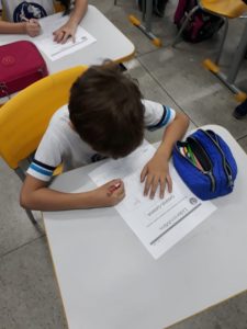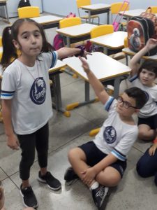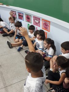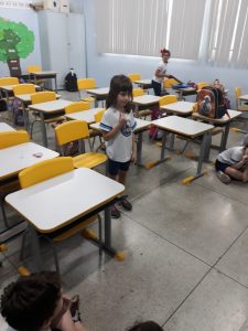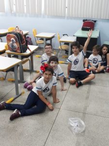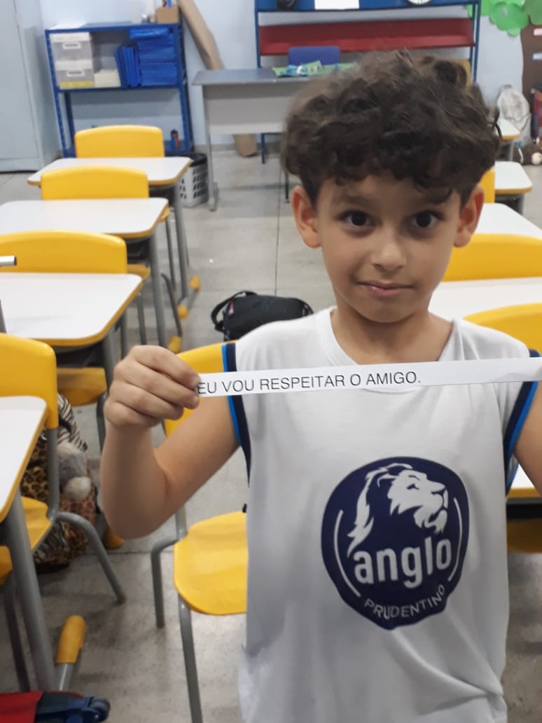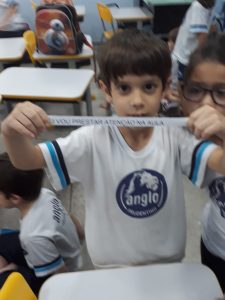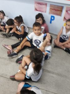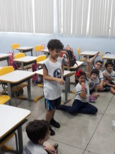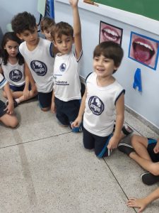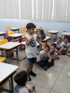 Em aula do Líder em Mim, a turma do 1º ano azul, da professora Giovana, participou de uma dinâmica bastante animada. Depois de lerem frases, os estudantes fizeram mímicas para que os colegas pudessem adivinhar se os atos expressados nas frases eram ou não eram importantes para eles.