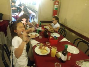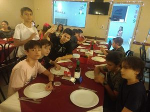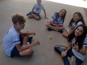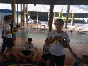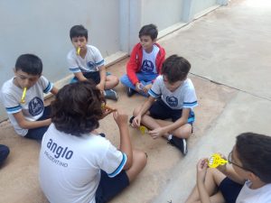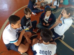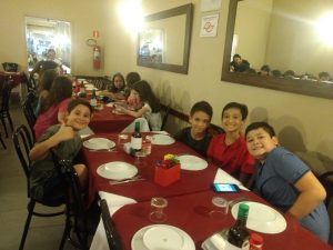 Os alunos dos 5º anos comemoram o encerramento da primeira fase do Ensino Fundamental, definida como Anos Iniciais, em uma pizzaria. A partir de 2020, portanto, esta turma parte para a etapa dos Anos Finais, na qual serão apresentados a conteúdos mais complexos e que servirão de base fundamental para o Ensino Médio. Ainda como parte do encerramento deste ano letivo, em aula com a professora Mariana, os 5° anos realizaram uma divertida dinâmica com base no programa de aprendizagem socioemocional Líder em Mim. O objetivo foi oportunizar a expressão de sentimentos e relembrar os temas trabalhados ao longo dos últimos meses.