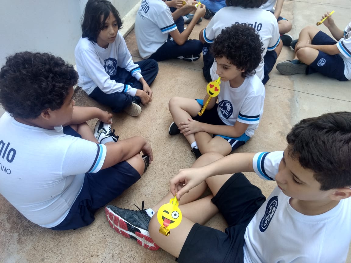 Os alunos dos 5º anos comemoram o encerramento da primeira fase do Ensino Fundamental, definida como Anos Iniciais, em uma pizzaria. A partir de 2020, portanto, esta turma parte para a etapa dos Anos Finais, na qual serão apresentados a conteúdos mais complexos e que servirão de base fundamental para o Ensino Médio. Ainda como parte do encerramento deste ano letivo, em aula com a professora Mariana, os 5° anos realizaram uma divertida dinâmica com base no programa de aprendizagem socioemocional Líder em Mim. O objetivo foi oportunizar a expressão de sentimentos e relembrar os temas trabalhados ao longo dos últimos meses.