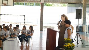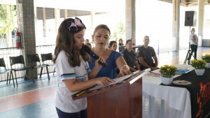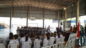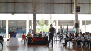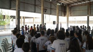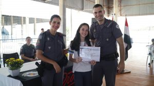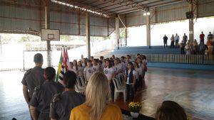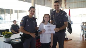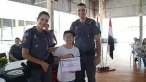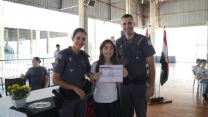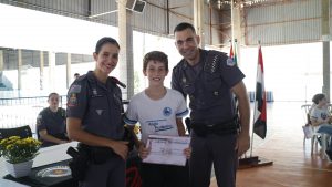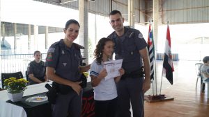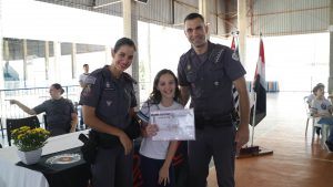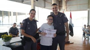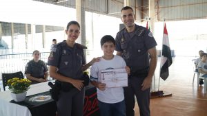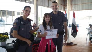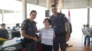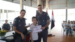 Realizamos hoje, com os alunos dos 5º anos do Ensino Fundamental e seus familiares, a cerimônia de encerramento do Proerd (Programa Educacional de Resistência às Drogas e Violência) desenvolvido pelo 18º BPM/I (Batalhão de Polícia Militar do Interior). O evento encerra todo um ciclo de trabalhos de orientação e prevenção ao uso de drogas com policiais militares especialmente treinados. Na oportunidade, os alunos receberam os respectivos certificados e fizeram apresentações.