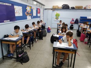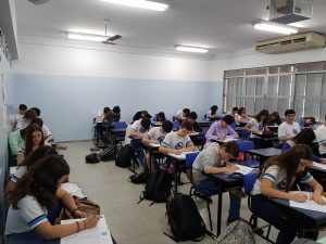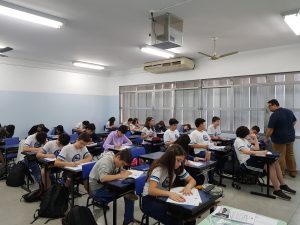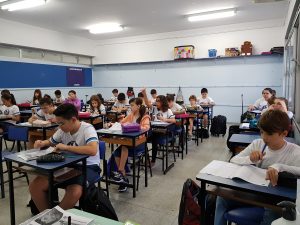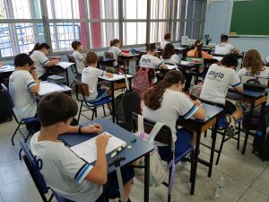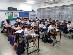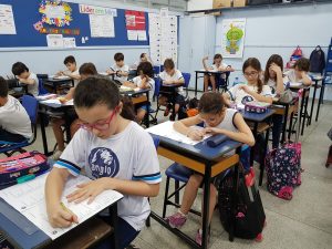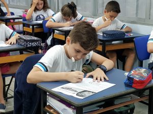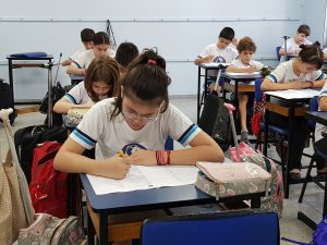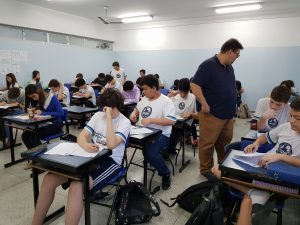 Os alunos dos 5º anos e dos 9º13 e 9º14 passaram hoje por uma avaliação das competências socioemocionais. A pesquisa também será aplicada nas 3ª séries do Ensino Médio. O coordenador de programas socioemocionais, professor José Artur Gonçalves Teixeira, explica que, com o instrumento de avaliação, fundamentado na teoria Big Five, será possível avaliar competências, como estabilidade emocional, extroversão, empatia e autorregulação das emoções. O diagnóstico auxiliará na implantação de novos projetos socioemocionais, além dos programas Líder em Mim e Semente, já desenvolvidos na escola.