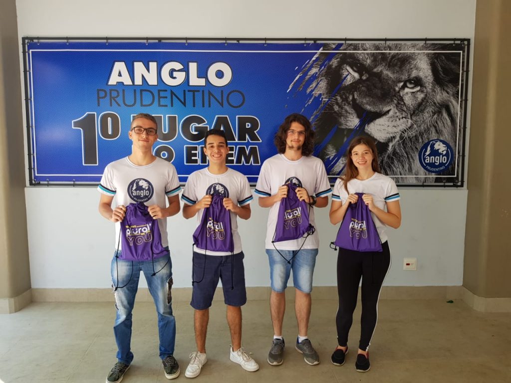 Como forma de reconhecimento pelo excelente desempenho e engajamento na plataforma de aprendizagem Plurall, cinco alunos do Anglo Prudentino receberam um Kit ENEM personalizado. Karla Pinheiro Peres*, Helena Ambiel Corral Camargo, João Guilherme Salisso Marcato, Bruno Dias Martimiano e Gabriel Machado Barbosa obtiveram as melhores médias nos ciclos de simulados realizados em escolas parceiras do sistema por todo o Brasil.
