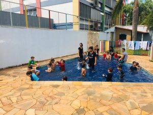 As turmas da Educação Infantil também tiveram uma programação especial de encerramento do ano letivo, com piquenique, cinema, festa fantasia, banho de lama, culinária, parque, dia da bicicleta, biblioteca divertida, apresentações de dança, oficinas com materiais recicláveis, entre outras brincadeiras. Confira nas fotos como foi esse período de recreação.