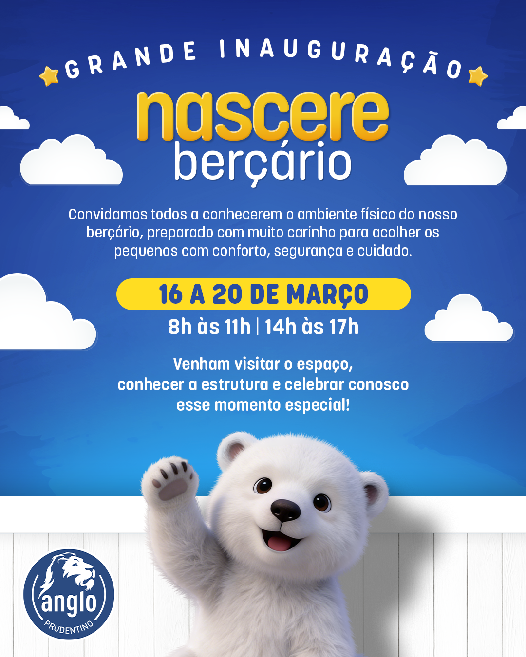 #BerçárioNascere #Inauguração #GrandeInauguração #AngloPrudentino #EducaçãoInfantil #Berçário #PrimeiraInfância #CuidadoComBebês #AmbienteAcolhedor #SegurançaECarinho #DesenvolvimentoInfantil #FamíliaAnglo #Novidade #PresidentePrudente