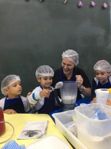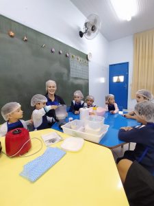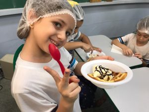 Na semana passada, os primeiros dias de recreação, as turmas das atividades diversificadas do Integral tiveram aulas especiais de culinária. Rolou um cardápio delicioso com hambúrguer artesanal e waffles com sorvete de creme e calda de chocolate. Entre as brincadeiras, o diferencial ficou com a experiência que tiveram com as “orbeez”, que são bolinhas de gel que crescem na água. A criançada, que cuidou do cabelo no salão de beleza do integral, ainda curtiu uma tarde de maravilhosa de cinema com pipoca em uma sessão do “Expresso Polar”. Confira como foi!