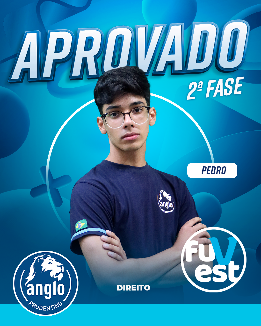 Pedro está aprovado na 2ª fase da FUVEST/USP em Direito.