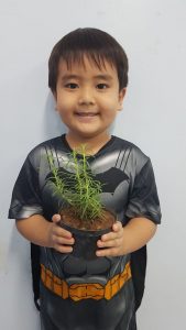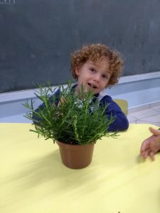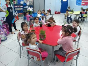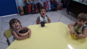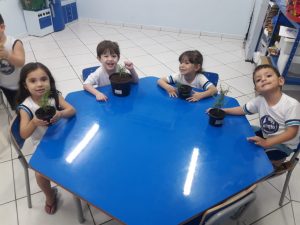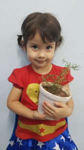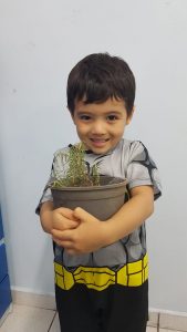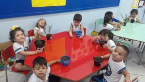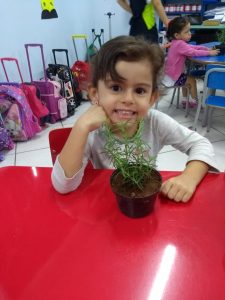 Turminhas dos Infantis 2 cultivam mudas de alecrim