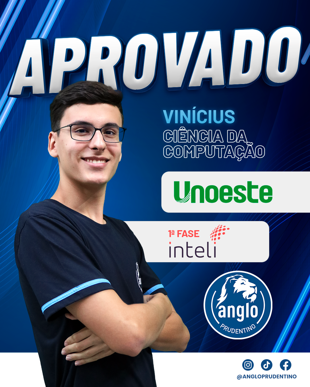 Parabéns ao nosso aluno Vinícius Giacon, aprovado na Unoeste e também na 1ª fase da Inteli.